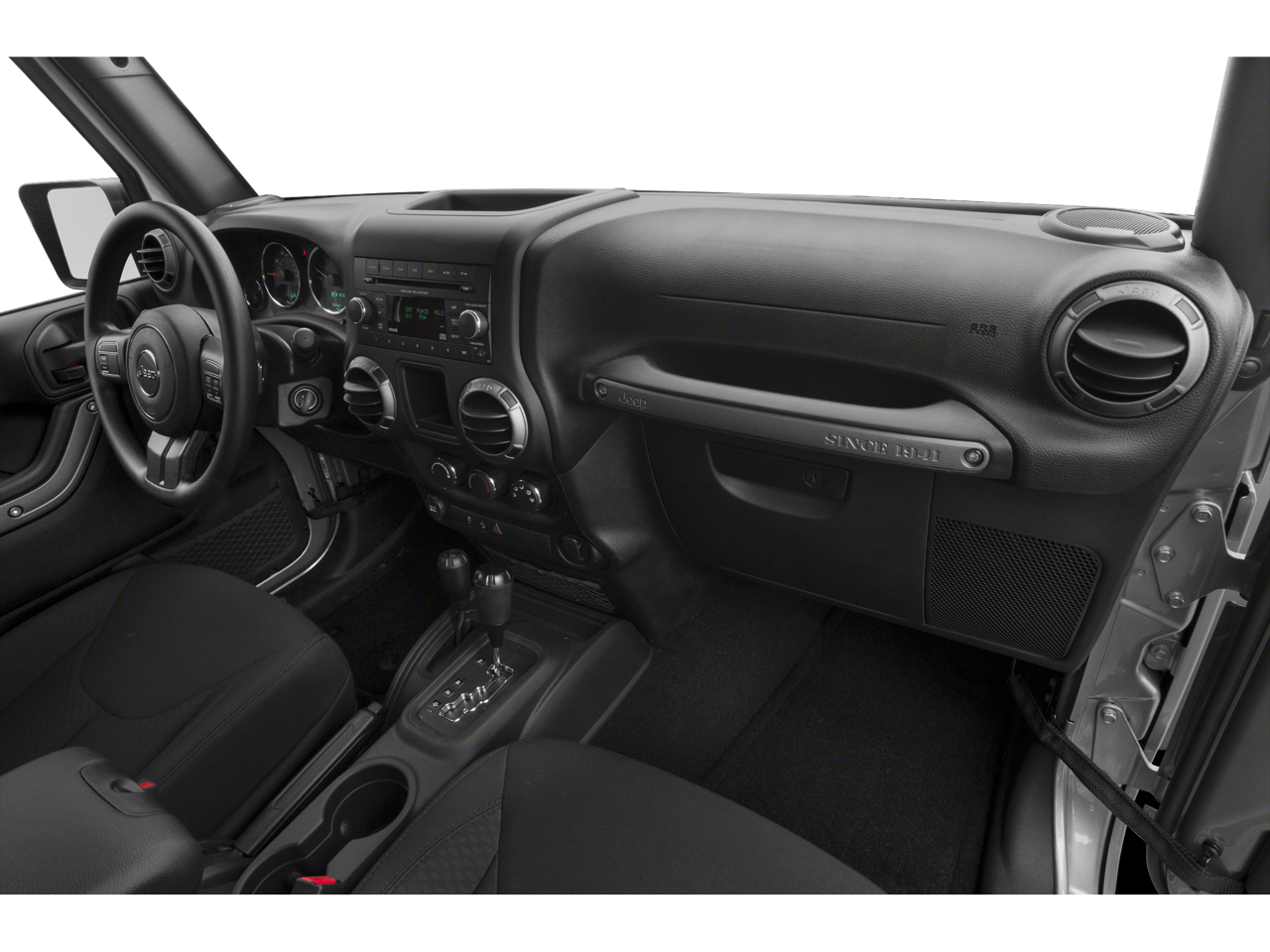 Power Convenience Group: Auto Dim Mirror with Reading Lamp; Front 1-Touch Down Power Windows; Power Heated Mirrors; Security Alarm; Power Locks; Remote Keyless Entry. Quick Order Package 24F Freedom Edition: Rear Passenger Assist Handles Kit; Mineral Gray Grille; P255/75R17 OWL On/off Road Tires; MOPAR Black Tail Lamp Guards; Freedom Edition Badging; Air Conditioning; Deep Tint Sunscreen Windows; Silver Interior Accents; MOPAR Slush Mats; Body Color Fender Flares; Black/mineral Gray Front Bumper; Rock Rails; Freedom Edition Cloth/leather Seats; Quick Silver Painted Accents; Black/mineral Gray Rear Bumper; 17" X 7.5" Painted Mineral Gray Wheels; Oscar Mike Badge; Black/chrome Screws Fuel Filler Door. Freedom Edition Package. Connectivity Group: Vehicle Information Center; Leather Wrapped Steering Wheel; Uconnect Voice Command with Bluetooth®; Tire Pressure Monitoring Display. Trailer Tow Group: Class II Receiver Hitch; Trailer Tow with 4-Pin Connector Wiring. Quick Order Package 23F Freedom Edition: Rear Passenger Assist Handles Kit; Mineral Gray Grille; P255/75R17 OWL On/off Road Tires; MOPAR Black Tail Lamp Guards; Freedom Edition Badging; Air Conditioning; Deep Tint Sunscreen Windows; Silver Interior Accents; MOPAR Slush Mats; Body Color Fender Flares; Black/mineral Gray Front Bumper; Rock Rails; Freedom Edition Cloth/leather Seats; Quick Silver Painted Accents; Black/mineral Gray Rear Bumper; 17" X 7.5" Painted Mineral Gray Wheels; Oscar Mike Badge; Black/chrome Screws Fuel Filler Door. Black 3-Piece Hard Top. 3.73 Rear Axle Ratio. SIRIUS Satellite Radio. **Equipment listed is based on original vehicle build and subject to change. Please confirm the accuracy of the included equipment by calling the dealer prior to purchase.**