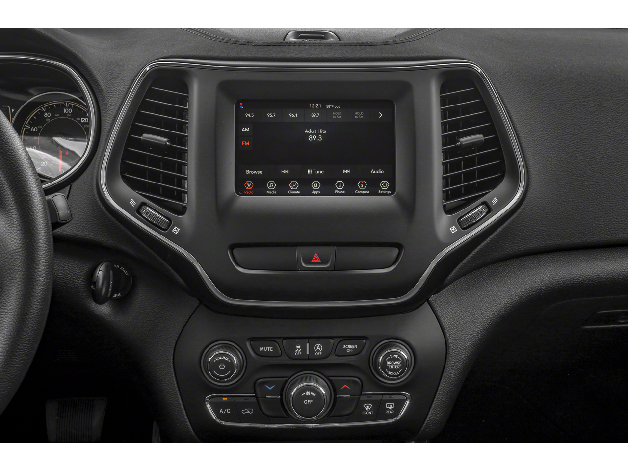 - Radio w/Seek-Scan, Clock, Speed Compensated Volume Control, Aux Audio Input Jack, Voice Activation, Radio Data System and Uconnect External Memory Control
