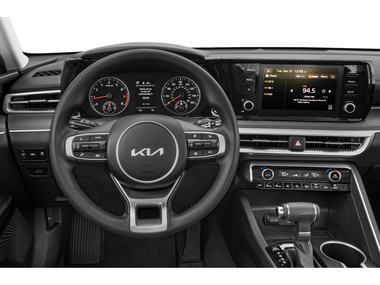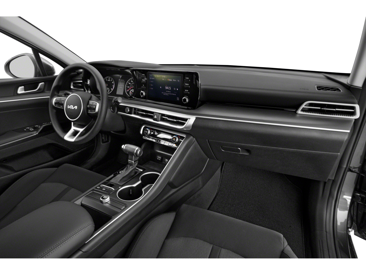 The vehicle features a hands-free Bluetooth® phone system. Protect this 2023 Kia K5 from unwanted accidents with a cutting edge backup camera system. Start this model from inside with remote start. This vehicle's Lane Departure Warning helps keep you in your lane. This mid-size car offers Apple CarPlay for seamless connectivity. This 2023 Kia K5 comes equipped with Android Auto for seamless smartphone integration on the road. This vehicle keeps you comfortable with Auto Climate. The vehicle utilizes collision avoidance to enhance safety by automatically detecting and evading potential accidents. It projects refinement with a racy metallic gray exterior. This Kia K5 has a 4 Cyl, 1.6L high output engine. Front wheel drive on this model gives you better traction and better fuel economy. Set the temperature exactly where you are most comfortable in this vehicle. The fan speed and temperature will automatically adjust to maintain your preferred zone climate.
